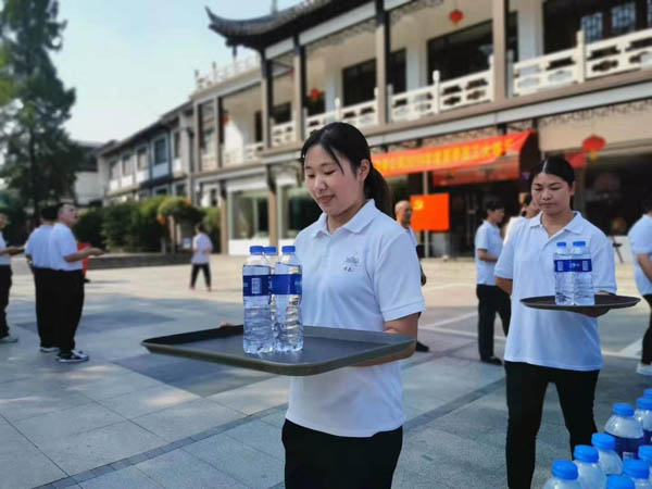 參與此次“夏季大練兵”的人員,從總經(jīng)理到計(jì)時(shí)工,從50后一直到90后,全體員工一視同仁,分五批次在冶春御馬頭店進(jìn)行輪訓(xùn)。內(nèi)容涵蓋軍訓(xùn)和服務(wù)技能培訓(xùn),軍訓(xùn)主要包括稍息、立正、轉(zhuǎn)體等隊(duì)列訓(xùn)練,服務(wù)技能培訓(xùn)主要包括服務(wù)站姿和托盤等技能訓(xùn)練。