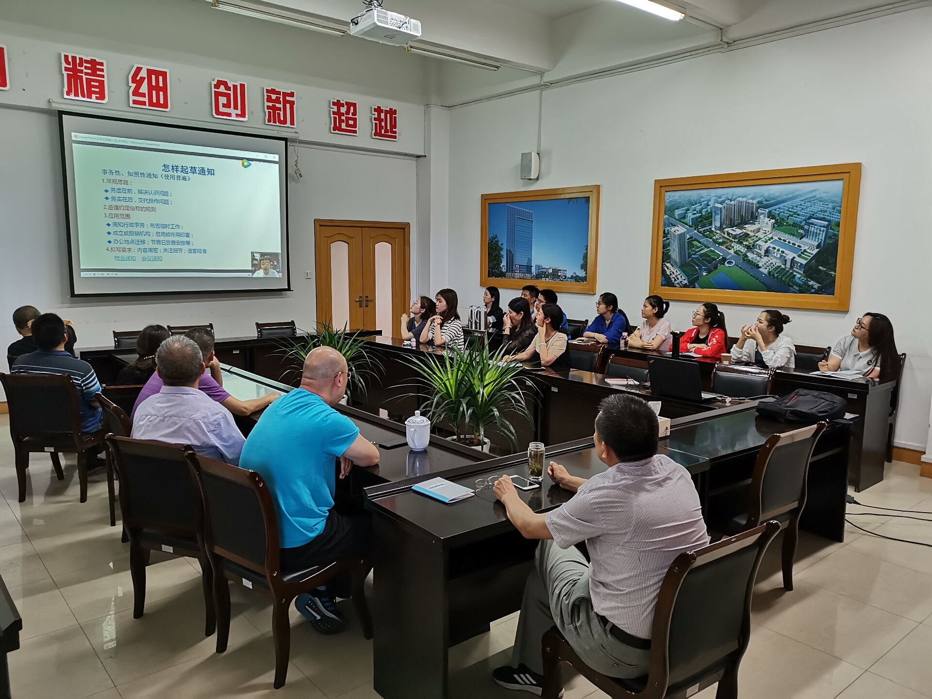 6月6日下午,公司組織觀看集團(tuán)下發(fā)的培訓(xùn)視頻《公文培訓(xùn)》的第二節(jié)課,公司各部門員工代表參加了此次培訓(xùn)。 本次培訓(xùn)重點(diǎn)講解了下行文起草的基本辦法,圍繞怎樣編寫通知、會(huì)議紀(jì)要及總結(jié),著重的從格式、內(nèi)容、寫法、寫作特點(diǎn)和寫作注意事項(xiàng)給大家做了詳細(xì)介紹,并通過一些案例分析,從不同層面對稿件進(jìn)行了點(diǎn)評,深挖問題,具體分析,使大家茅塞頓開,收獲匪淺。 課后,公司對此次培訓(xùn)的課件進(jìn)行了共享,便于員工反復(fù)研習(xí)、消化吸收。今后,將繼續(xù)開展此類培訓(xùn)活動(dòng),為員工搭建學(xué)習(xí)提升的平臺,優(yōu)化公司公文寫作和新聞報(bào)道水平。 |