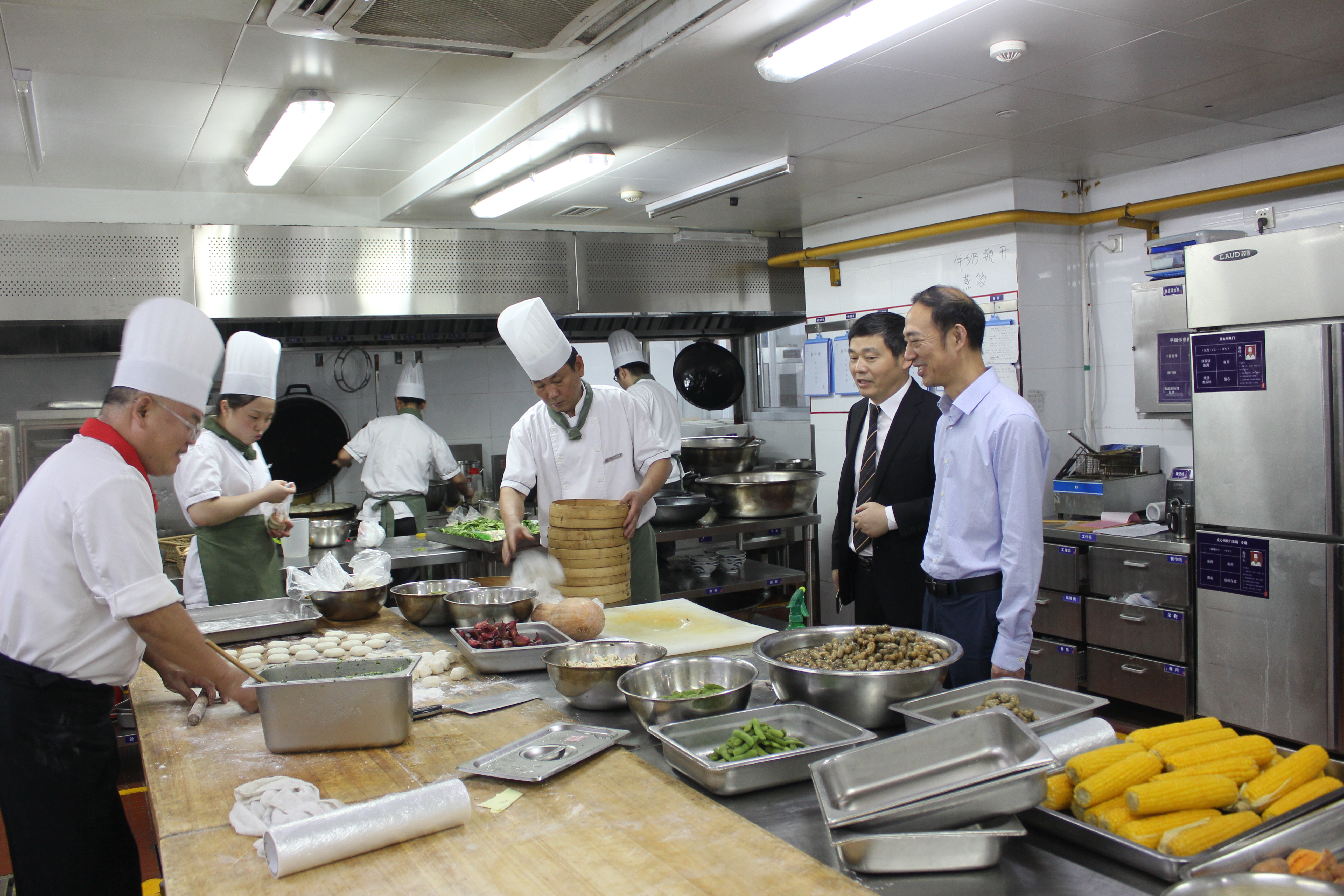 揚(yáng)子江集團(tuán)總經(jīng)理蔡余良和副總經(jīng)理陳國(guó)春視察后廚準(zhǔn)備情況