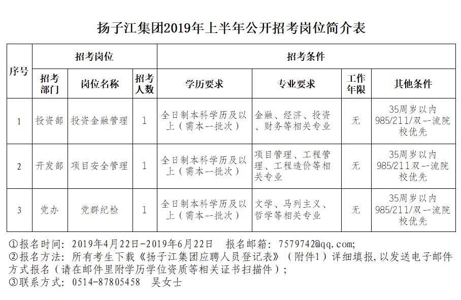 揚(yáng)子江集團(tuán)2019年上半年公開招考管理崗位