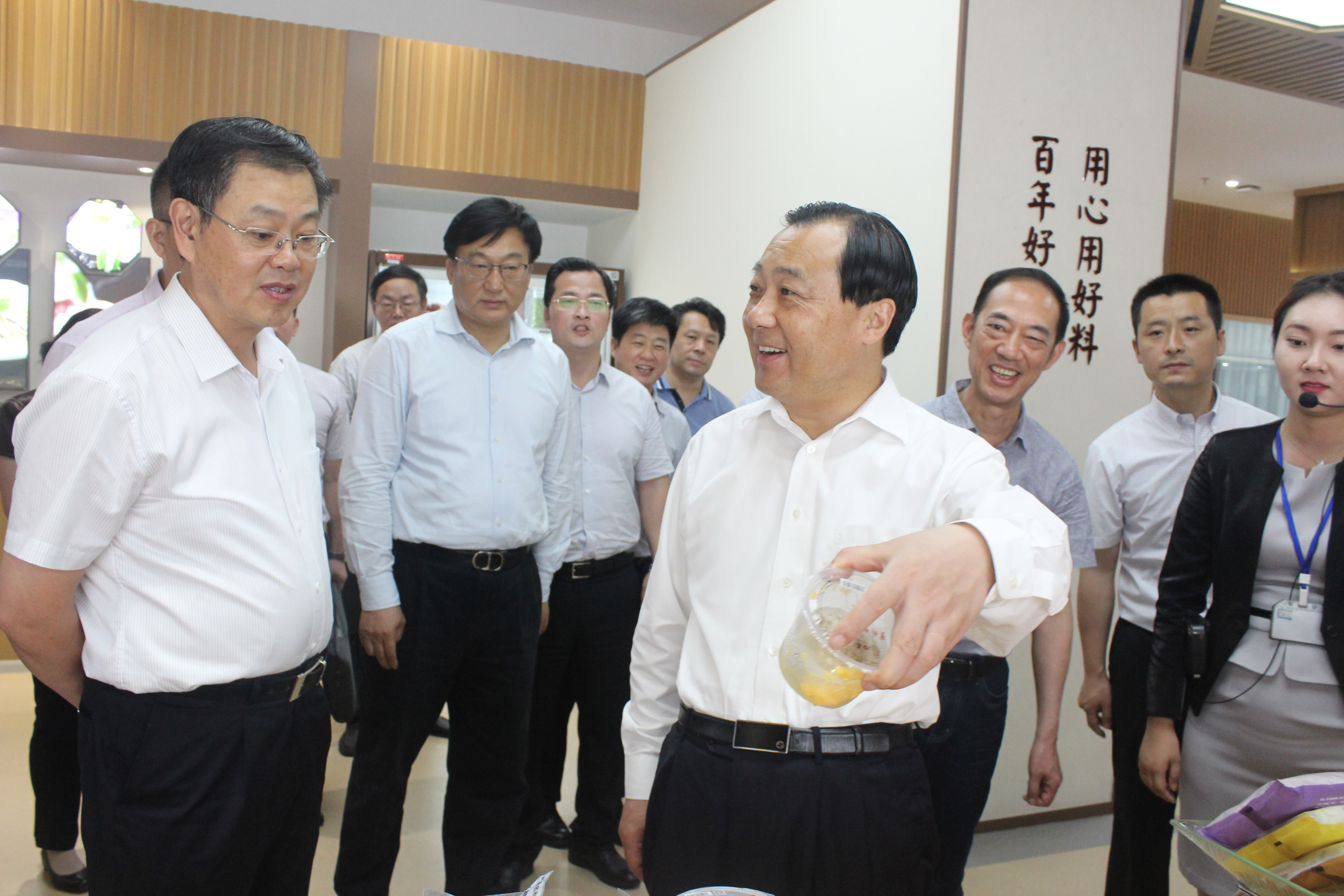 74日下午,市委書記謝正義率副市長丁一、市農(nóng)委相關(guān)負(fù)責(zé)人等赴冶春食品生產(chǎn)配送公司視察冶春發(fā)展情況。揚子江集團黨委書記、董事長蔡余良率全體領(lǐng)導(dǎo)班子和冶春食品公司相關(guān)負(fù)責(zé)人陪同。