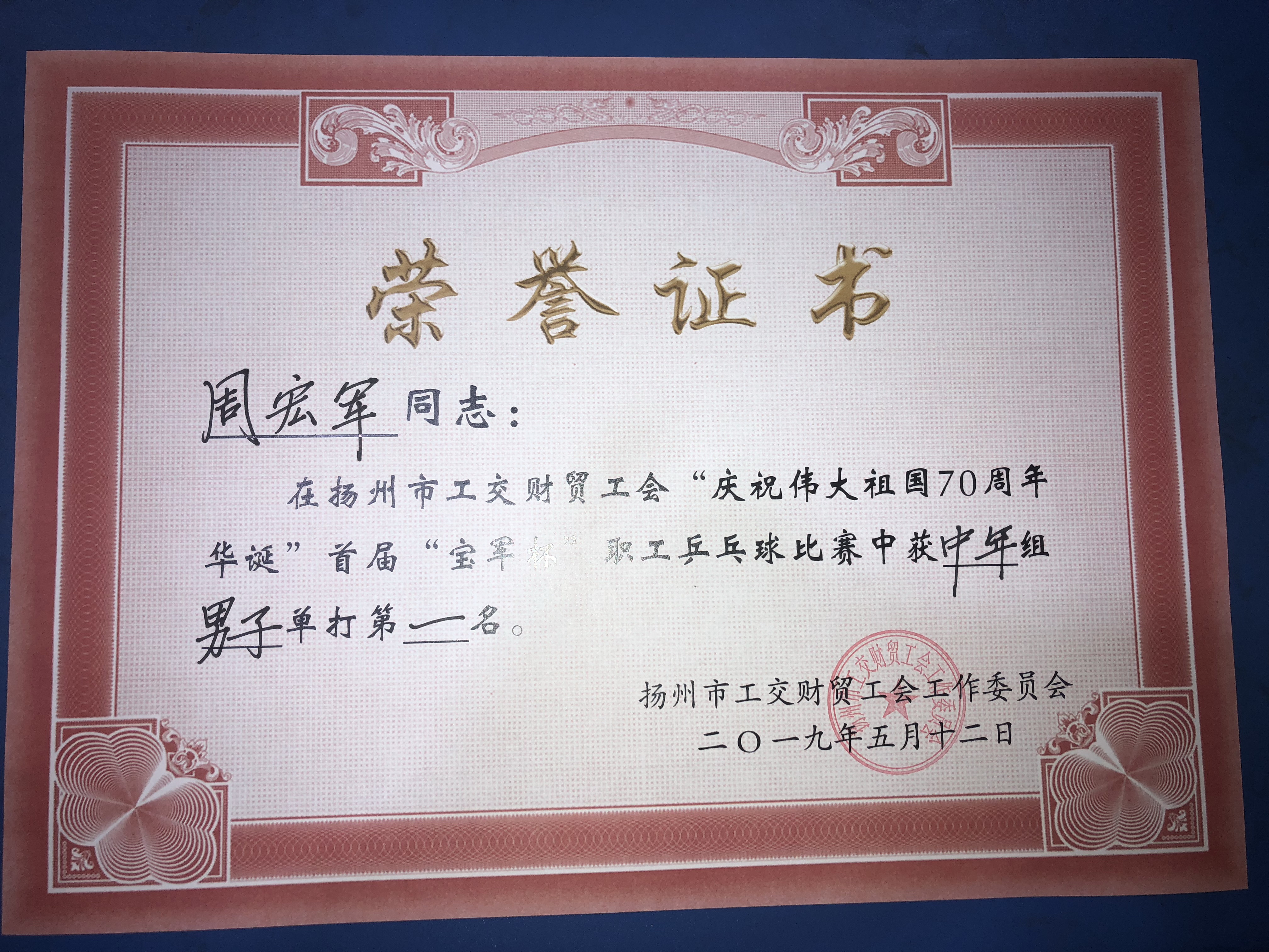 為慶祝新中國成立70周年,豐富職工的文體生活,5月12日,揚(yáng)子江集團(tuán)選拔優(yōu)秀選手組隊(duì)參加市公交財(cái)貿(mào)工會(huì)舉辦的“慶祝偉大祖國70周年華誕”首屆“寶軍杯”職工乒乓球比賽。 此次比賽采用單循環(huán)、11分制賽制,分設(shè)青年組男子單打、青年組女子單打、中年組男子單打和中年組女子單打四個(gè)項(xiàng)目。經(jīng)過一天的激烈對(duì)抗,最終代表集團(tuán)參賽的揚(yáng)州商城周宏軍奪得中年組男子單打第一名,西園飯店邵堂獲得中年組男子單打第三名,珍園實(shí)業(yè)公司劉磊獲得青年組男子單打第三名。周宏軍也將代表市公交財(cái)貿(mào)工會(huì)參加市第十三屆運(yùn)動(dòng)會(huì)。(集團(tuán)黨辦 沈揚(yáng)) |