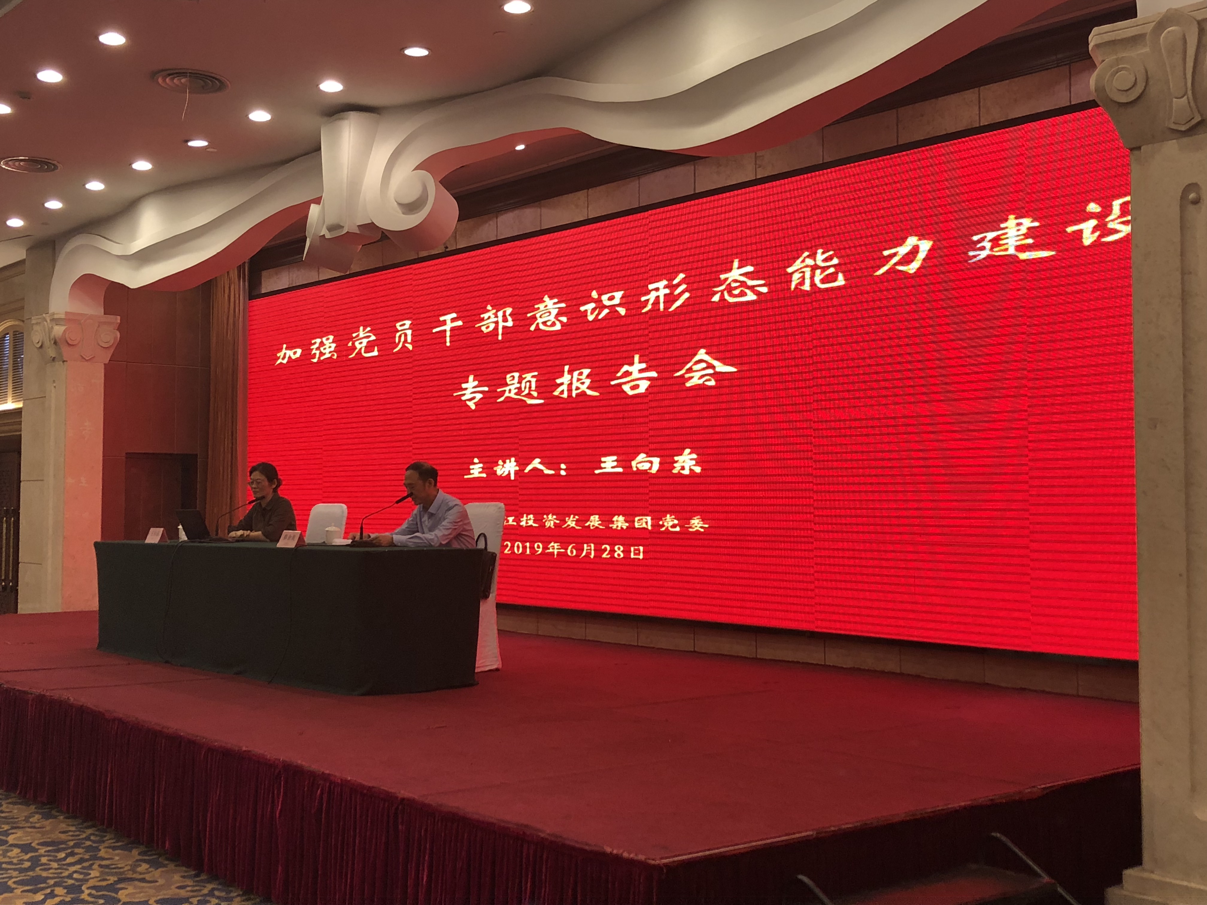 為迎接中國共產(chǎn)黨成立98周年,加強(qiáng)集團(tuán)黨委意識形態(tài)工作責(zé)任制落實(shí),按照集團(tuán)黨委中心組年度工作計(jì)劃,6月28日下午,揚(yáng)子江集團(tuán)黨委舉辦《加強(qiáng)黨員干部意識形態(tài)工作能力建設(shè)》專題輔導(dǎo)報告會。揚(yáng)州市委黨校王向東教授應(yīng)邀作報告。會議由集團(tuán)黨委書記、董事長蔡余良主持。集團(tuán)黨委領(lǐng)導(dǎo)班子成員、中層干部、本部全體黨員、所屬單位領(lǐng)導(dǎo)班子成員共計(jì)120人參加了本次報告會。 報告會上,王向東教授緊緊圍繞圍繞意識形態(tài),以全局視野,首先分析了國外特別是西方意識形態(tài)發(fā)展和現(xiàn)狀,對社會主義意識形態(tài)概念、特征作了闡述。進(jìn)一步指出了意識形態(tài)工作對我黨的極端重要性,和目前意識形態(tài)領(lǐng)域斗爭形勢的嚴(yán)峻性,剖析了當(dāng)下我們黨員干部意識形態(tài)能力還有待進(jìn)一步加強(qiáng)。最后,就如何加強(qiáng)黨員干部意識形態(tài)能力建設(shè)提出了方法路徑和解決措施。王教授講課緊密結(jié)合形勢,層次結(jié)構(gòu)清晰;案例豐富詳實(shí)。在場黨員干部對意識形態(tài)工作概念以及如何加強(qiáng)意識形態(tài)能力水平有了全新的理解與掌握。 蔡書記在總結(jié)講話中指出,希望同志們以此次報告會為契機(jī),結(jié)合市委、市國資委黨委關(guān)于意識形態(tài)工作的部署要求,認(rèn)真履行和落實(shí)好意識形態(tài)工作的職責(zé)和責(zé)任,進(jìn)一步提高開展意識形態(tài)工作的重要性、緊迫性認(rèn)識,進(jìn)一步加強(qiáng)開展意識形態(tài)工作的能力建設(shè)。以更加務(wù)實(shí)的態(tài)度、更加踏實(shí)的作風(fēng)、更加有力的舉措,將集團(tuán)開展意識形態(tài)工作提高到一個新的水平。(集團(tuán)黨委)